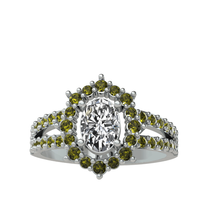 Swarovski ve peridot 14 ayar beyaz altın yüzük