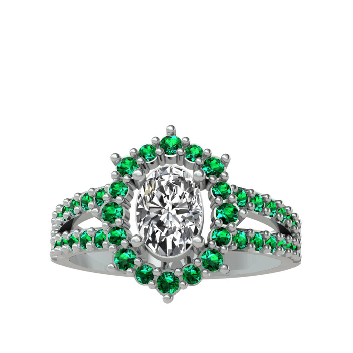 Swarovski ve yeşil kuvars 8 ayar beyaz altın yüzük
