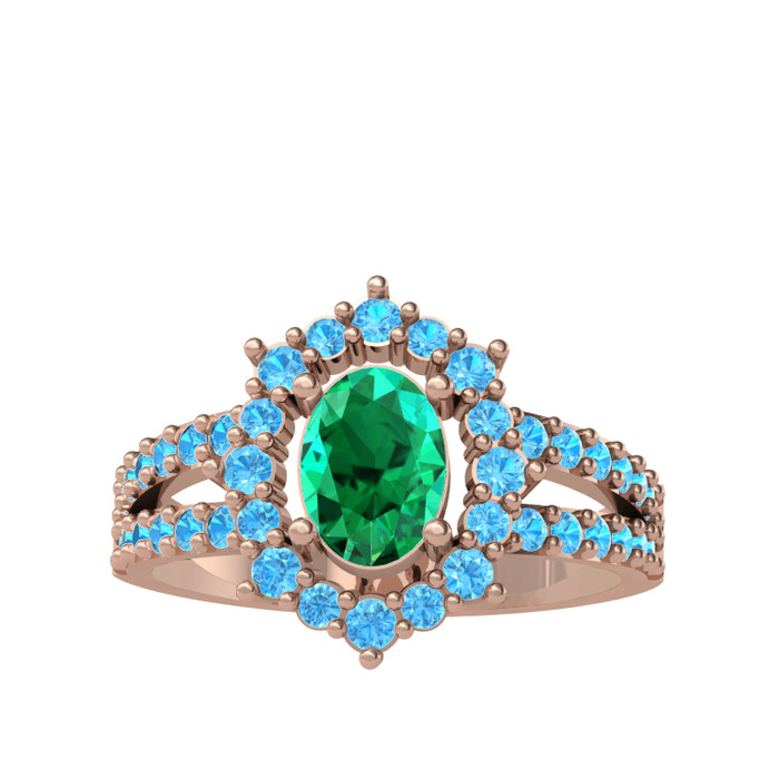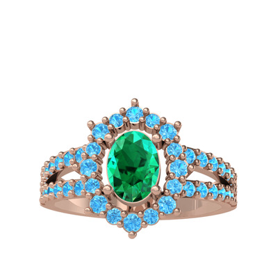 Yeşil kuvars ve akuamarin 18 ayar rose altın yüzük