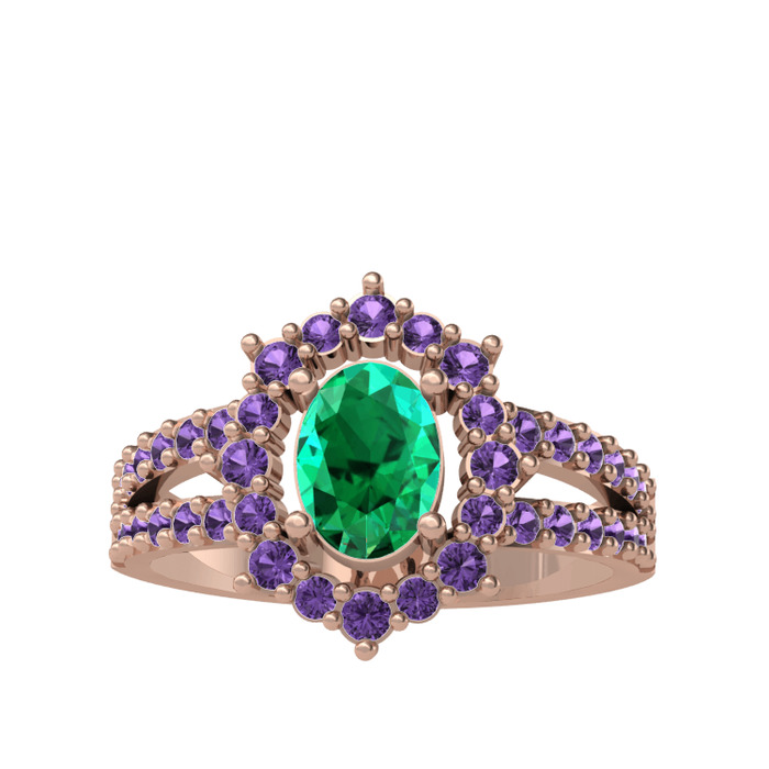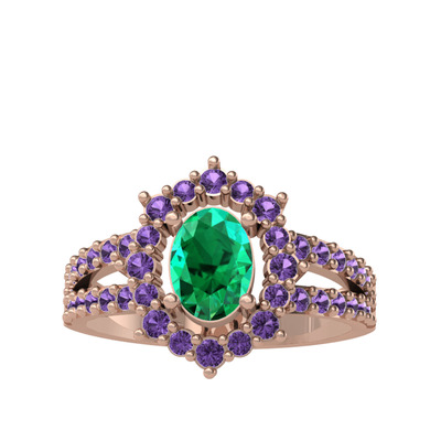 Yeşil kuvars ve ametist 18 ayar rose altın yüzük