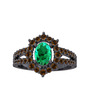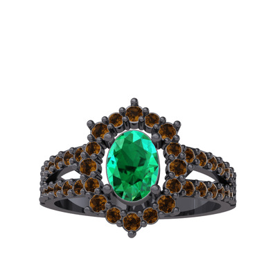 Yeşil kuvars ve dumanlı kuvars 925 ayar siyah rodyum kaplama gümüş yüzük