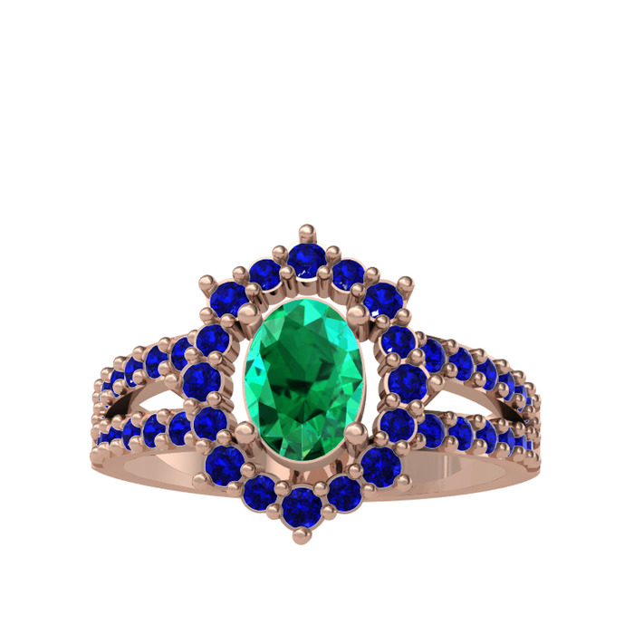 Yeşil kuvars ve lab safir 18 ayar rose altın yüzük