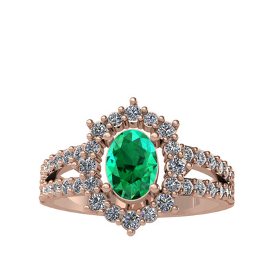 Yeşil kuvars ve pırlanta 925 ayar rose altın kaplama gümüş yüzük (0.8 karat)