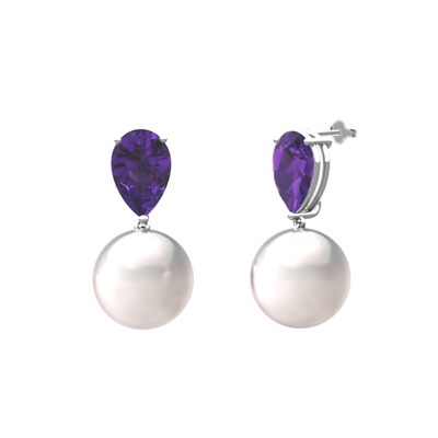 Inci ve ametist 14 ayar beyaz altın küpe