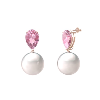 Inci ve pembe kuvars 925 ayar rose altın kaplama gümüş küpe