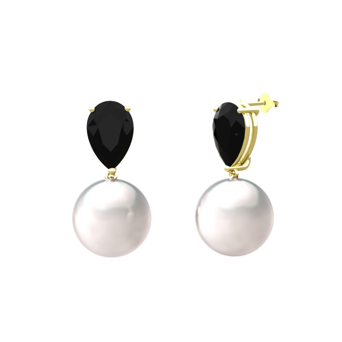 Inci ve siyah zirkon 925 ayar altın kaplama gümüş küpe