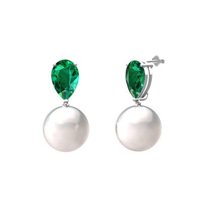 Inci ve yeşil kuvars 14 ayar beyaz altın küpe