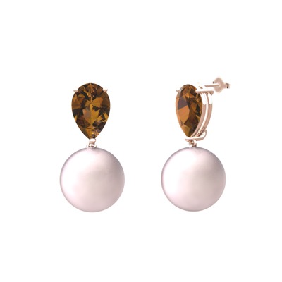 Pembe inci ve dumanlı kuvars 18 ayar rose altın küpe