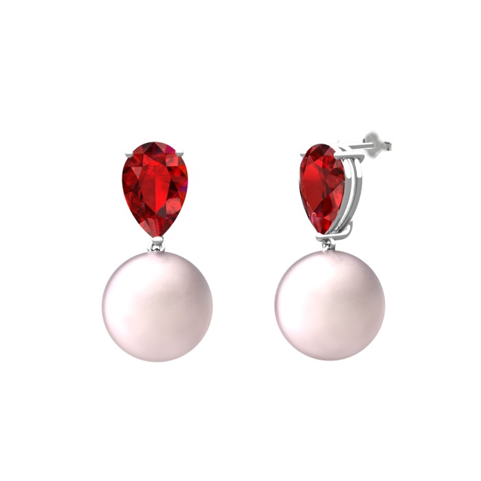 Pembe inci ve garnet 8 ayar beyaz altın küpe