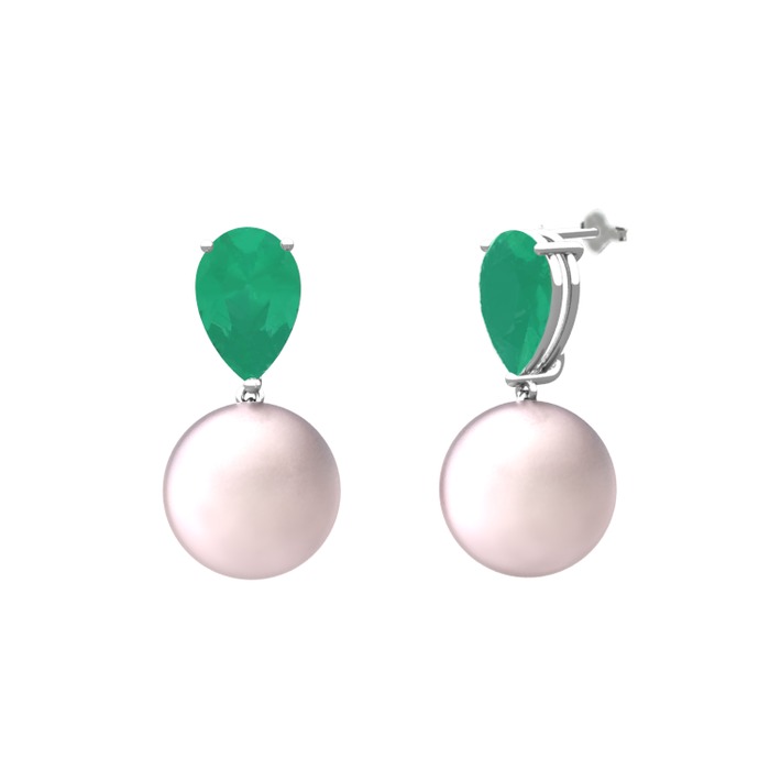 Pembe inci ve kök zümrüt 8 ayar beyaz altın küpe