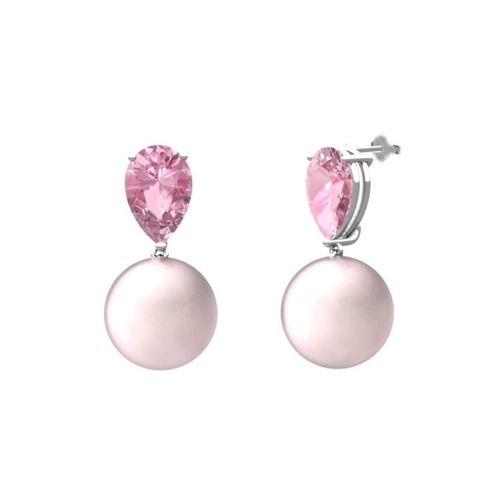 Pembe inci ve pembe kuvars 18 ayar beyaz altın küpe