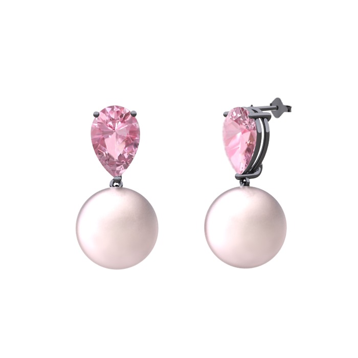 Pembe inci ve pembe kuvars 925 ayar siyah rodyum kaplama gümüş küpe
