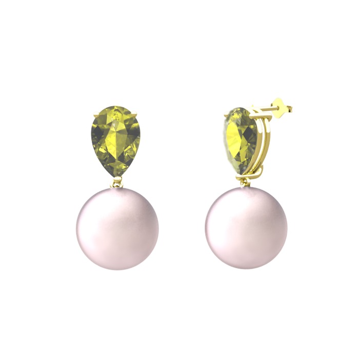 Pembe inci ve peridot 8 ayar altın küpe