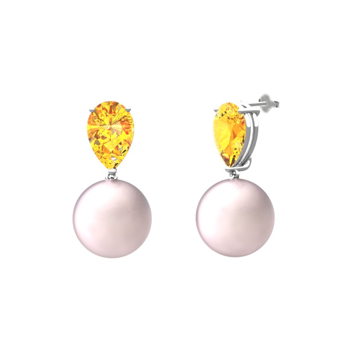 Pembe inci ve sitrin 8 ayar beyaz altın küpe