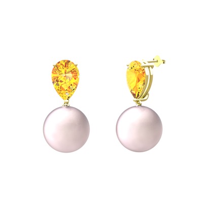 Pembe inci ve sitrin 925 ayar altın kaplama gümüş küpe