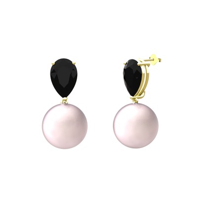 Pembe inci ve siyah zirkon 8 ayar altın küpe