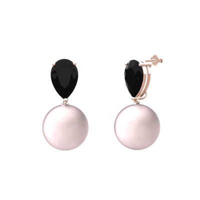 Pembe inci ve siyah zirkon 8 ayar rose altın küpe