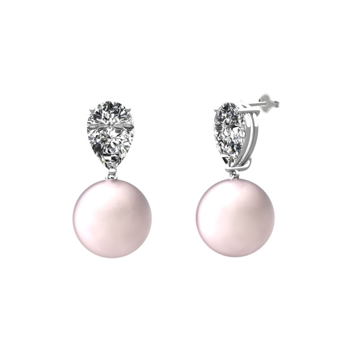 Pembe inci ve swarovski 14 ayar beyaz altın küpe
