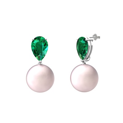 Pembe inci ve yeşil kuvars 8 ayar beyaz altın küpe