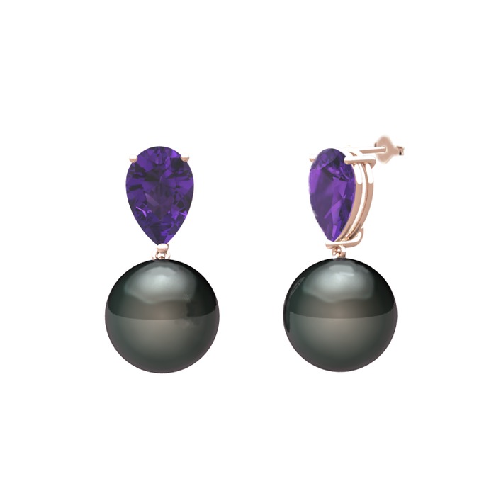 Siyah inci ve ametist 925 ayar rose altın kaplama gümüş küpe