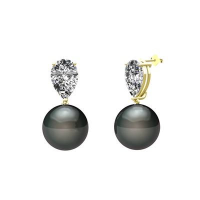 Siyah inci ve beyaz zirkon 8 ayar altın küpe