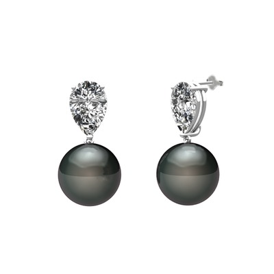 Siyah inci ve beyaz zirkon 925 ayar gümüş küpe