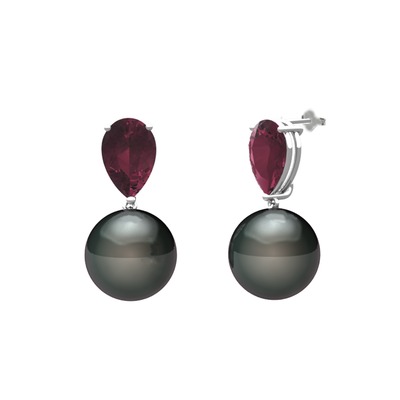 Siyah inci ve kök yakut 14 ayar beyaz altın küpe