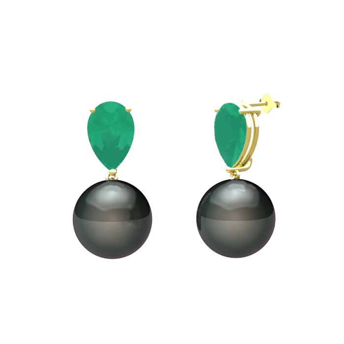 Siyah inci ve kök zümrüt 18 ayar altın küpe
