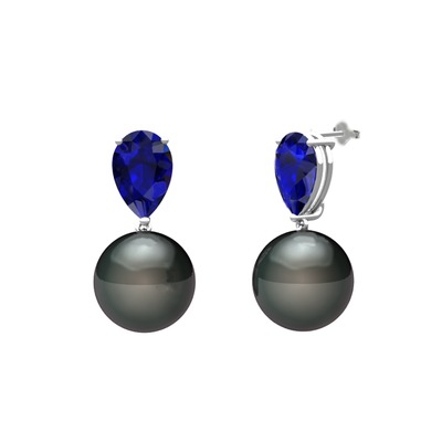 Siyah inci ve lab safir 14 ayar beyaz altın küpe