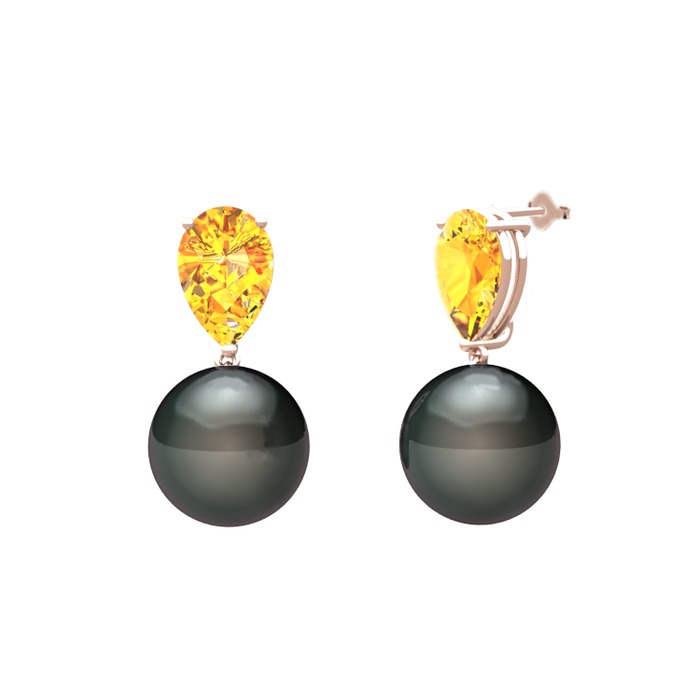 Siyah inci ve sitrin 8 ayar rose altın küpe