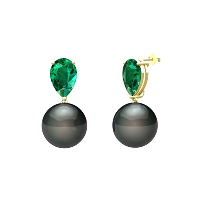 Siyah inci ve yeşil kuvars 14 ayar altın küpe