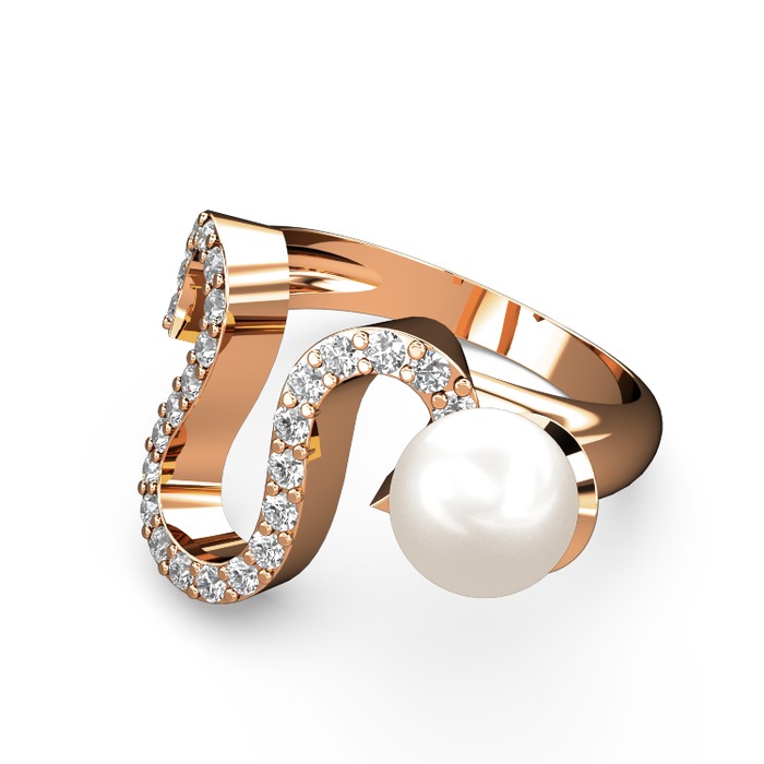Inci ve beyaz zirkon 925 ayar rose altın kaplama gümüş yüzük