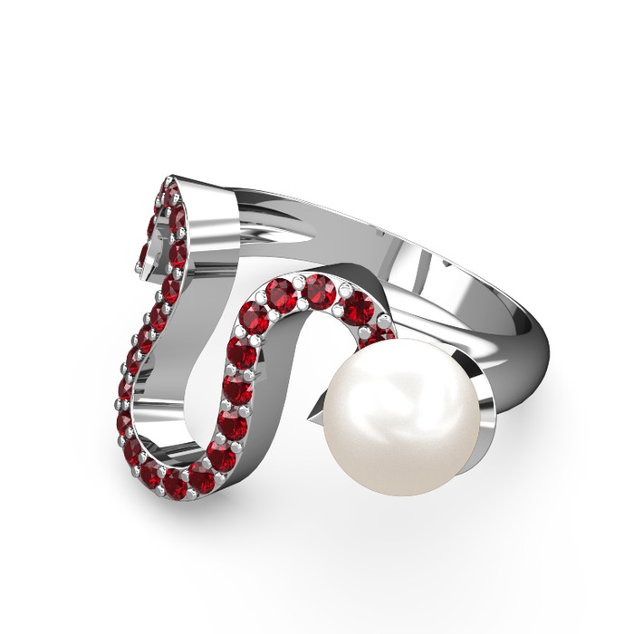 Inci ve garnet 18 ayar beyaz altın yüzük