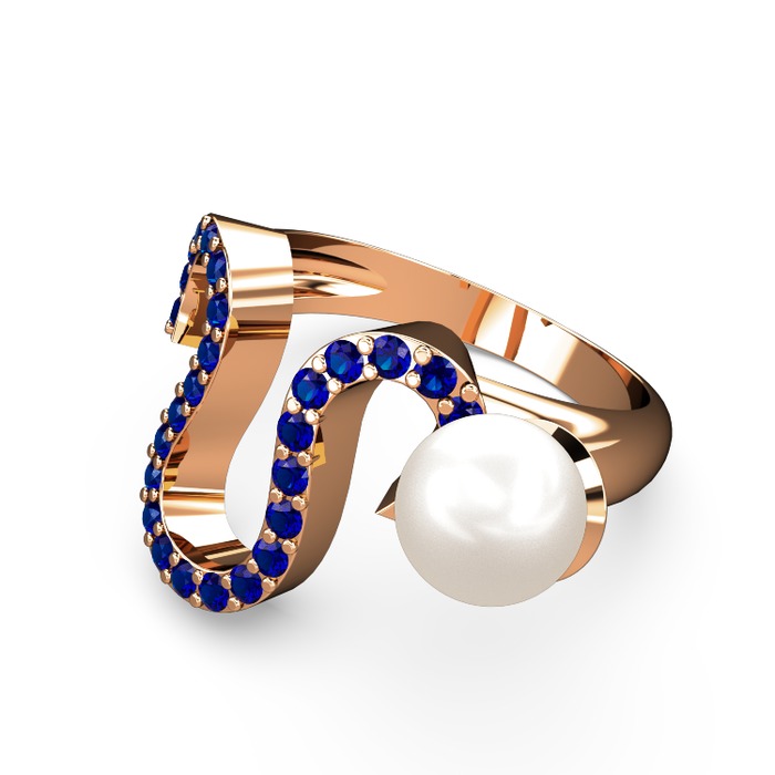 Inci ve lab safir 925 ayar rose altın kaplama gümüş yüzük