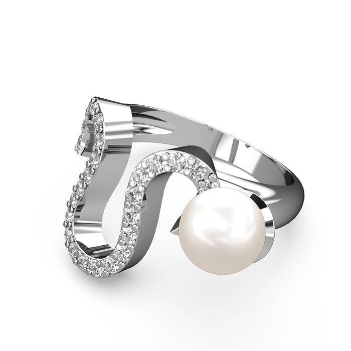Inci ve pırlanta 8 ayar beyaz altın yüzük (0.555 karat)
