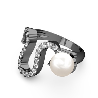 Inci ve pırlanta 925 ayar siyah rodyum kaplama gümüş yüzük (0.555 karat)