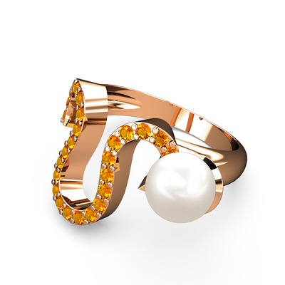Inci ve sitrin 14 ayar rose altın yüzük
