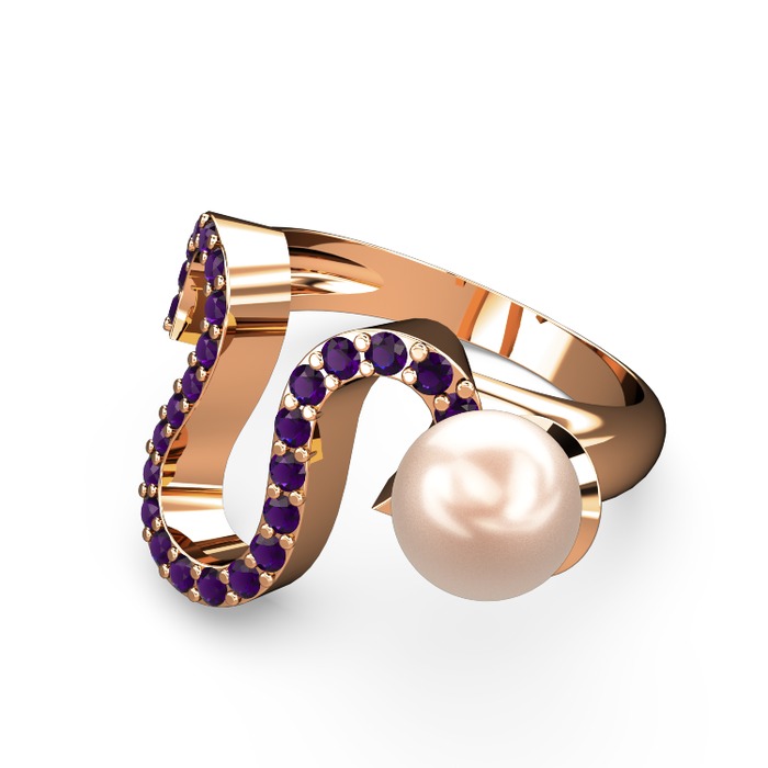 Pembe inci ve ametist 14 ayar rose altın yüzük