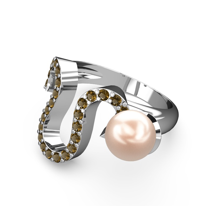 Pembe inci ve dumanlı kuvars 18 ayar beyaz altın yüzük