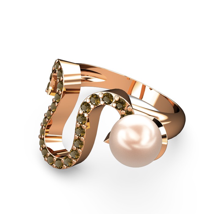 Pembe inci ve dumanlı kuvars 8 ayar rose altın yüzük