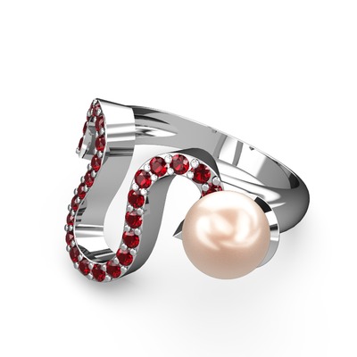 Pembe inci ve garnet 18 ayar beyaz altın yüzük
