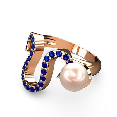 Pembe inci ve lab safir 18 ayar rose altın yüzük