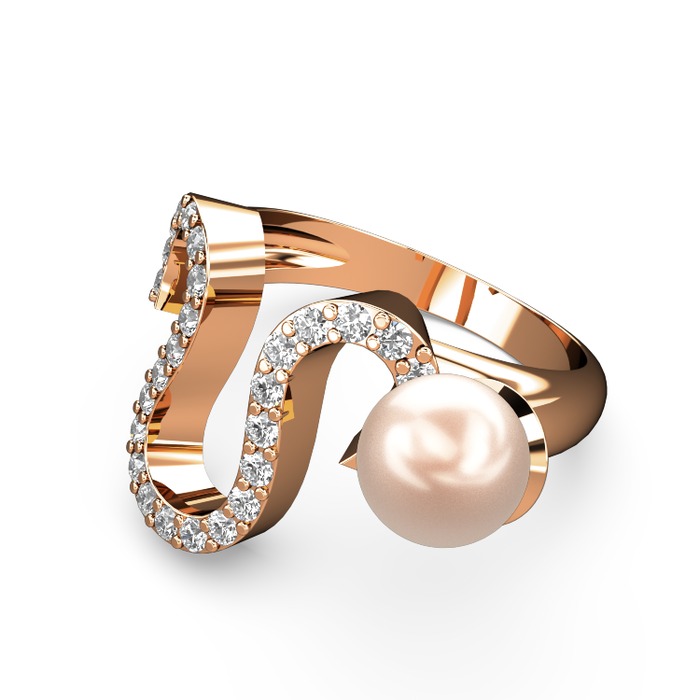 Pembe inci ve pırlanta 14 ayar rose altın yüzük (0.555 karat)