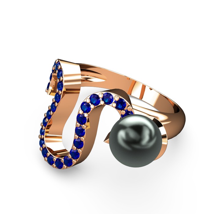 Siyah inci ve lab safir 18 ayar rose altın yüzük