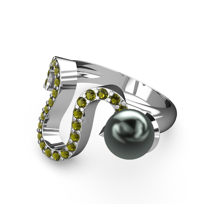 Siyah inci ve peridot 925 ayar gümüş yüzük
