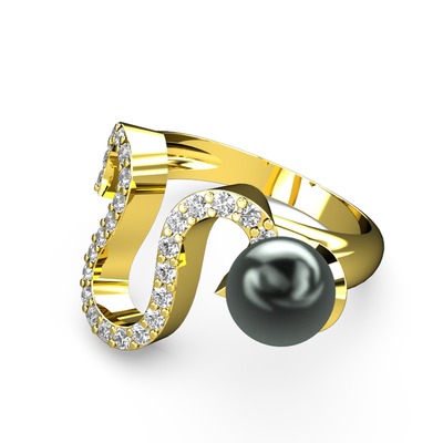 Siyah inci ve pırlanta 925 ayar altın kaplama gümüş yüzük (0.555 karat)