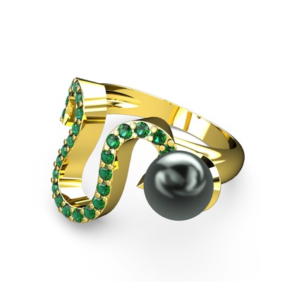 Siyah inci ve yeşil kuvars 8 ayar altın yüzük