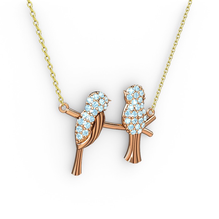 Akuamarin 14 ayar rose altın kolye (40 cm gümüş rolo zincir)