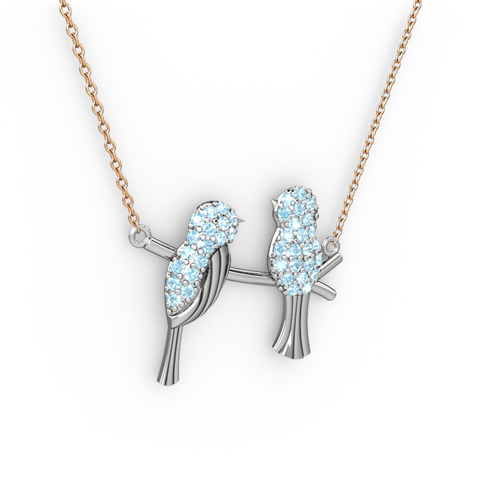 Akuamarin 18 ayar beyaz altın kolye (40 cm gümüş rolo zincir)