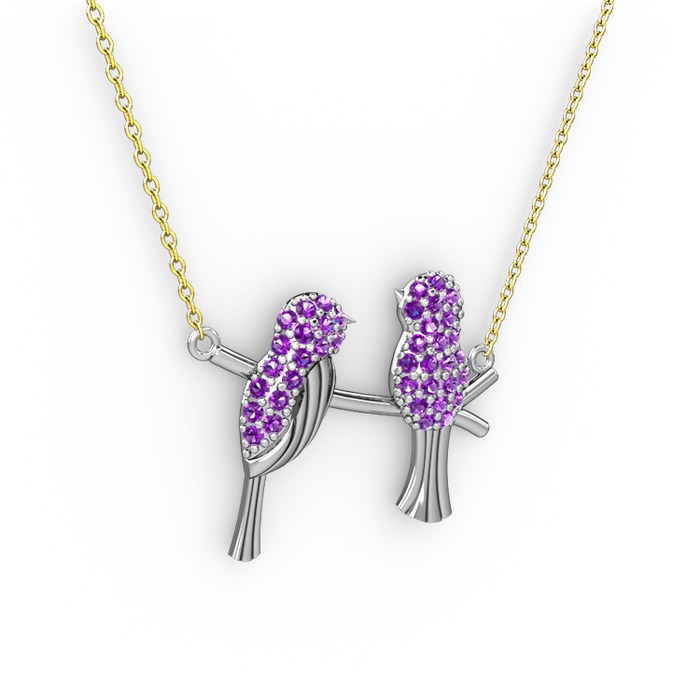 Ametist 14 ayar beyaz altın kolye (40 cm altın rolo zincir)